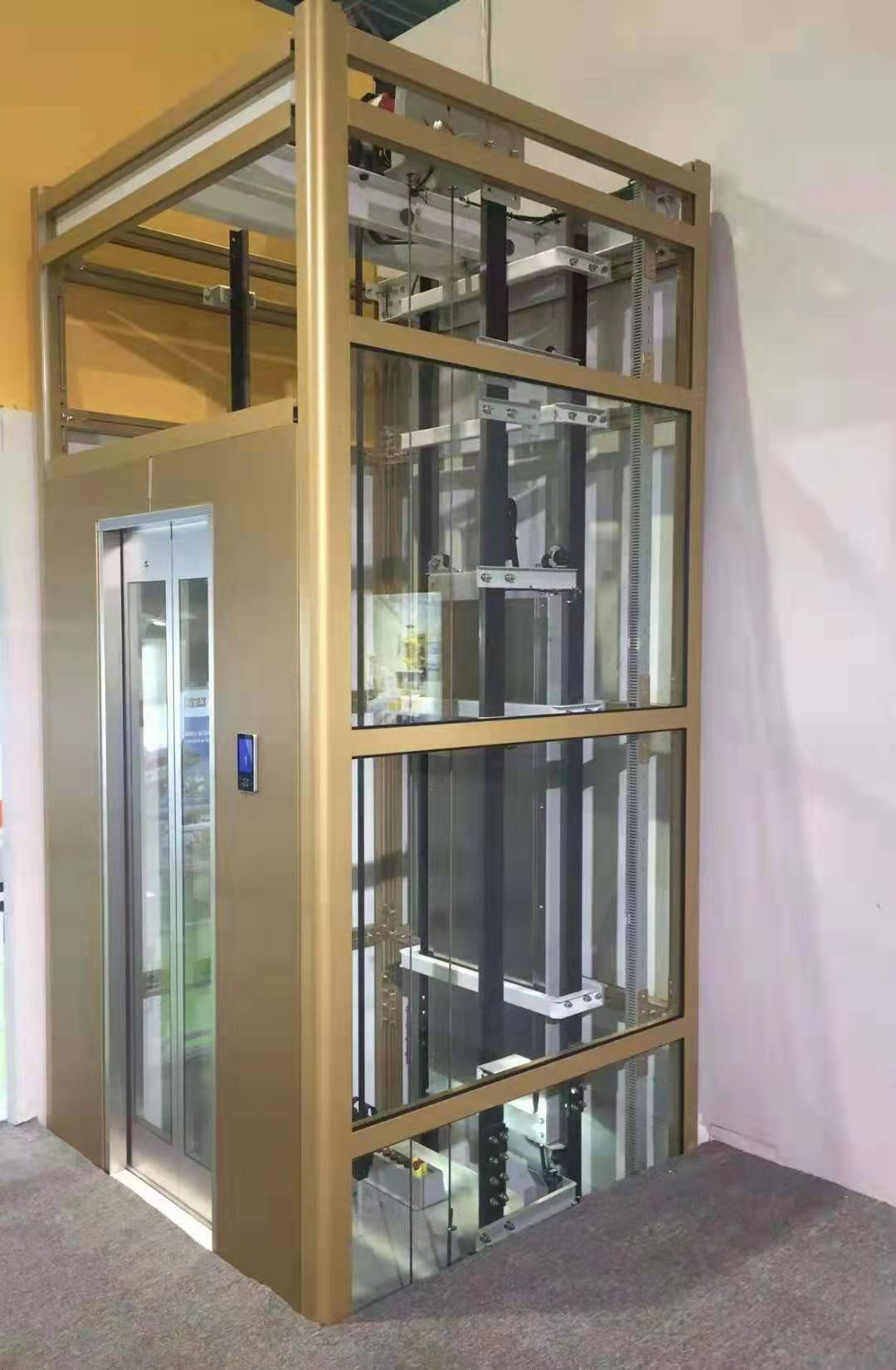 业主选择了金色观光梯,简洁稳重,结构部件一目了然整齐舒适。受到小区业主们的认同赞赏。